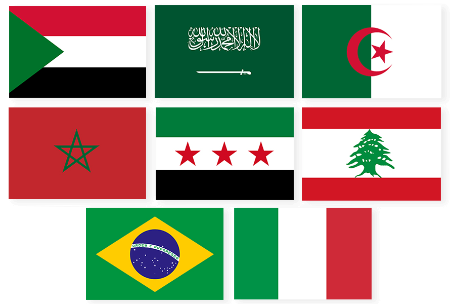 • الجزائر – السعودية – السودان – لبنان – سوريا – المغرب